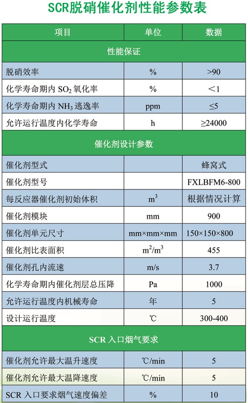 催化劑的選用及反應時間是影響脫硝效率的主要因素,為保證成功實施,采用已有成功應用業績的催化劑,催化劑的數量嚴格按廠家要求進行設計,并適當考慮余量。催化劑使用壽命為24000小時。